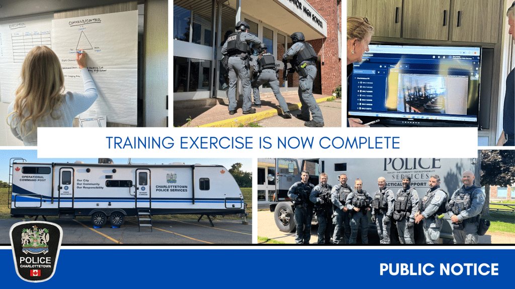 The Charlottetown Police Services (CPS) is advising residents and surrounding businesses of a training exercise that will be conducted today, Friday, June 27, between the hours of 8:00 a.m. and 4:00 p.m. at Colonel Gray High School (175 Spring Park Road). The exercise will bring a visible and increased presence of uniformed officers onto the school property for the day.