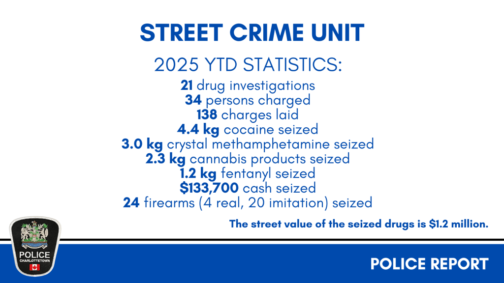 Anyone with information about suspicious activity or illegal drug activity is encouraged to contact Charlottetown Police Services at (902) 629-4064 or contact PEI Crime Stoppers at 1-800-222-TIPS (8477).